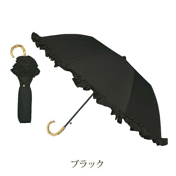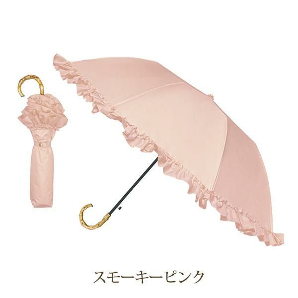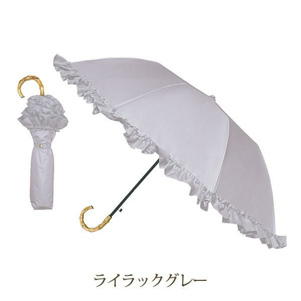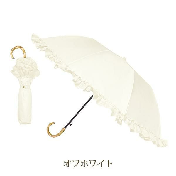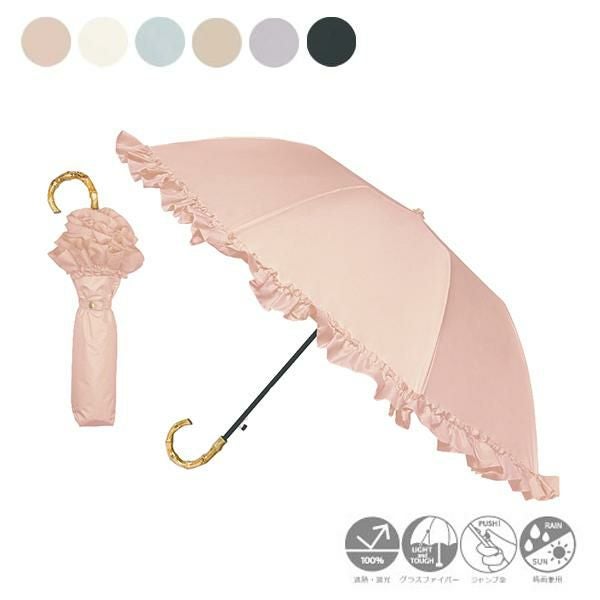 たっぷりのフリルを傘にあしらった、完全遮光の晴雨兼用折りたたみ傘。