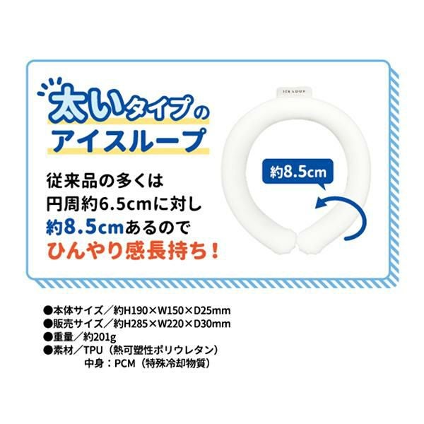 従来品の多くは円周約6.5cmに対し約8.5cmある太いタイプのループでひんやり感が長持ち!
