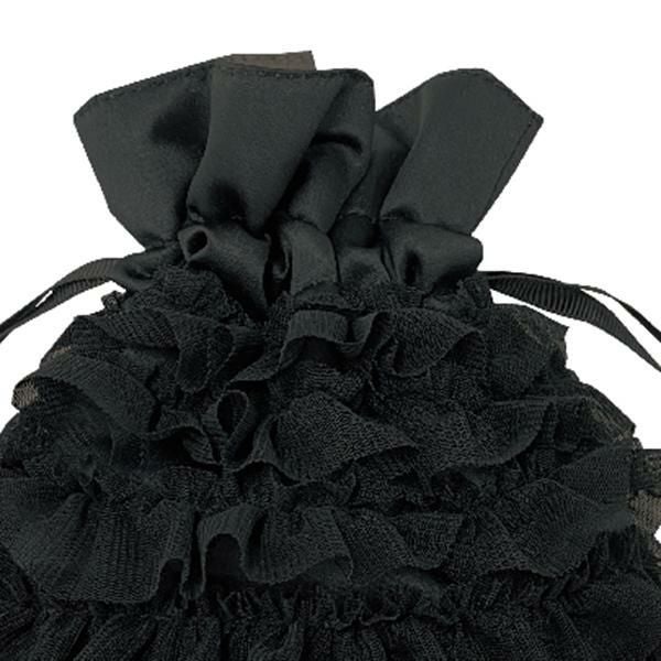 チュール生地をたっぷりあしらった、フリフリ巾着。幾重にも重なったミニフリルがとってもロマンティック♪口部分にはサテン生地を合わせ、かわいく上品なデザインに仕上げました。