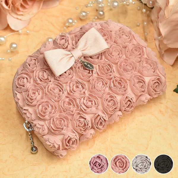 上品な刺繍生地で魅せる、ミニローズジュエリーポーチ♪