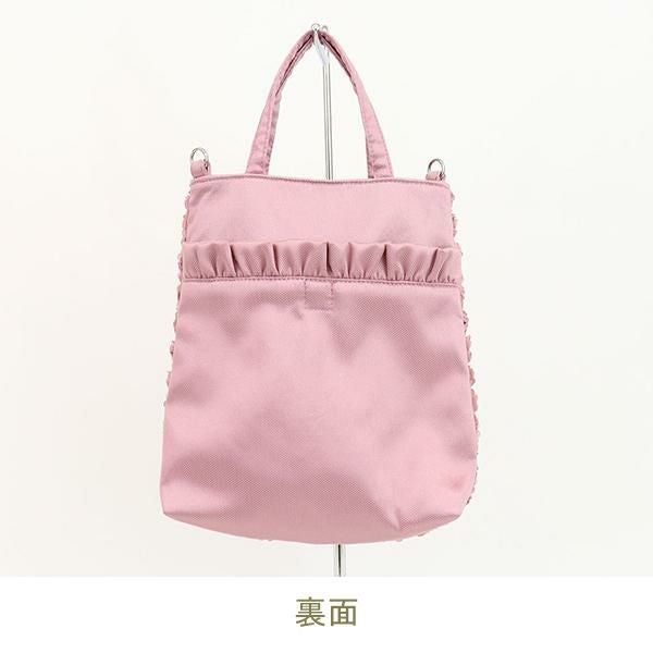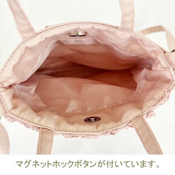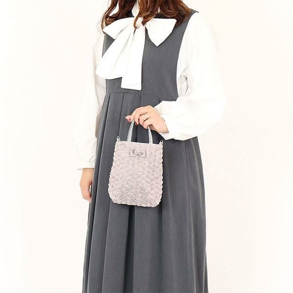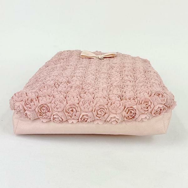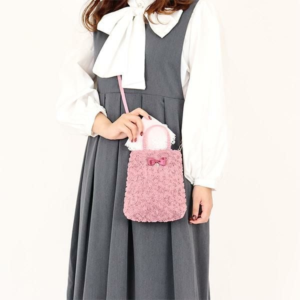 小さなバラを敷き詰めたような刺繍生地で作られた、ミニサイズのショルダーバッグ。