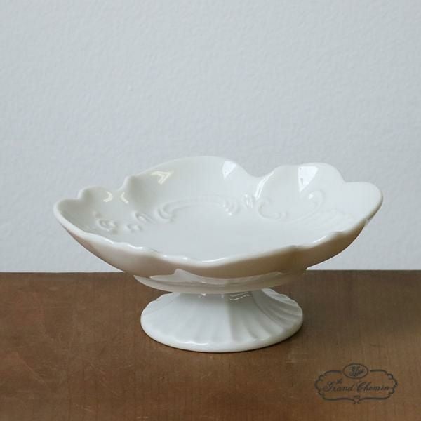 白い陶器のお皿に脚がついた素敵なミニコンポート。