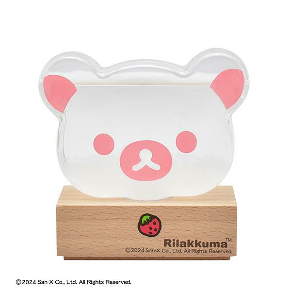 イチゴとピンク色で表現されたお顔がポイント、コリラックマのストームグラス