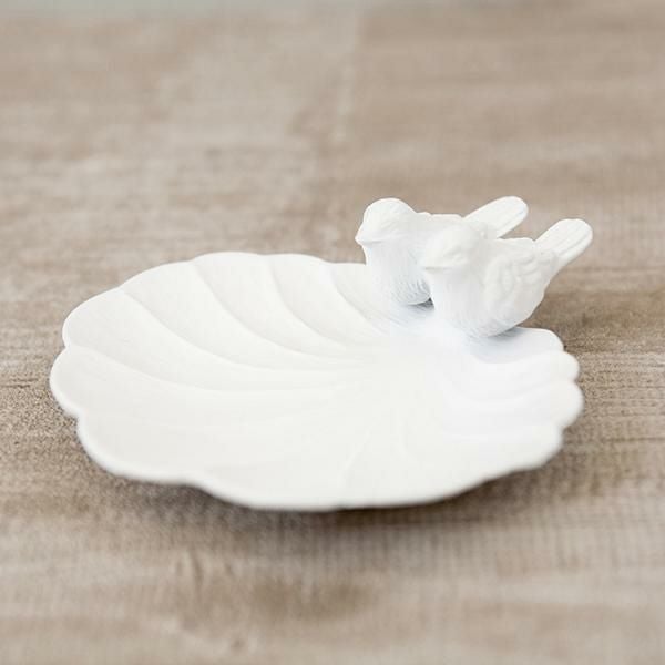 ちょこんと座った2羽の小鳥が愛らしいアクセサリートレー♪