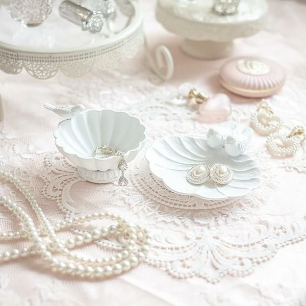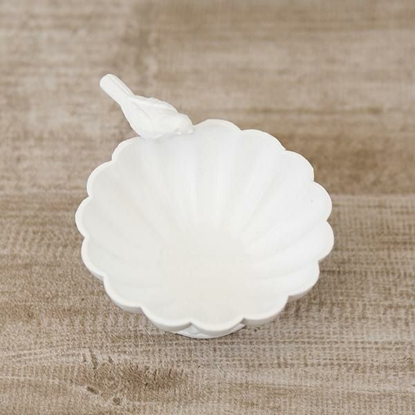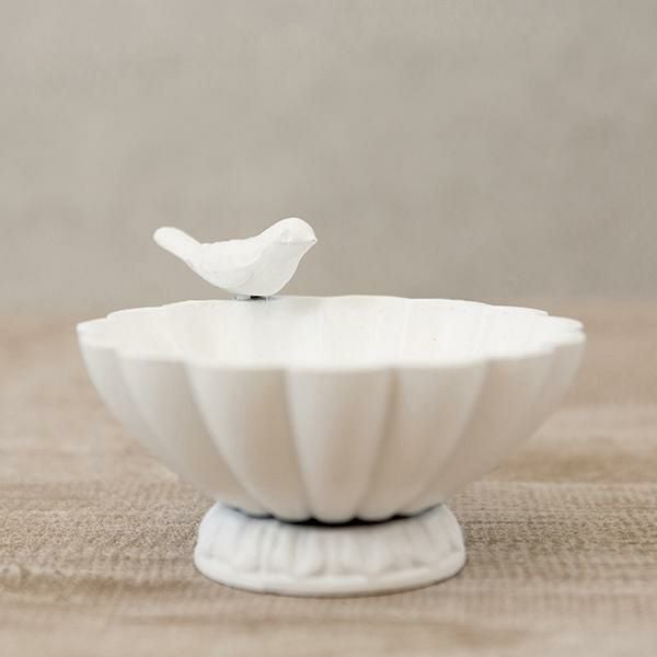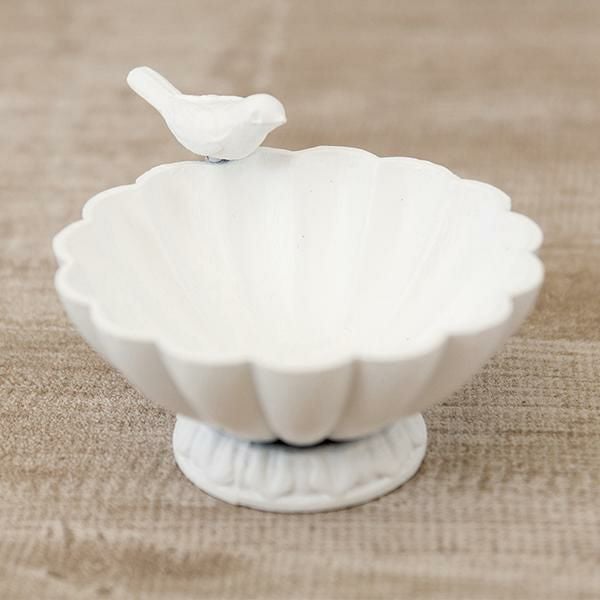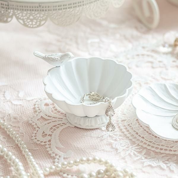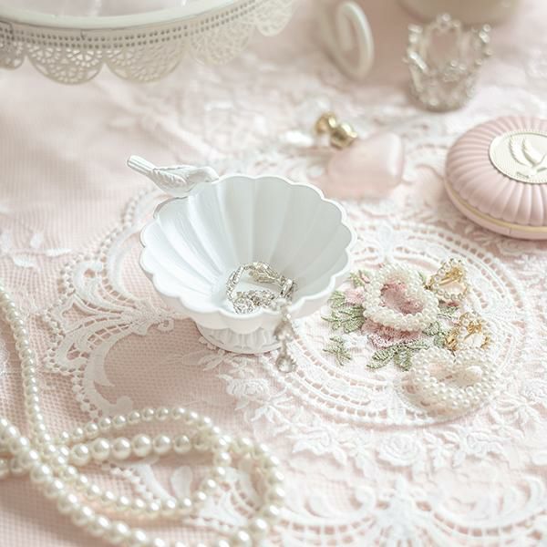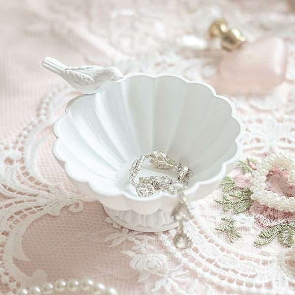 お皿の縁の小鳥が可愛いボウル。リングやネックレスなどの小さなアクセサリーを美しく飾ることができます。ドレッサーやチェスト上だけではなく、玄関で鍵の定位置にしても♪大切なものや、お気に入りのアイテムをおしゃれにディスプレイできます♪
