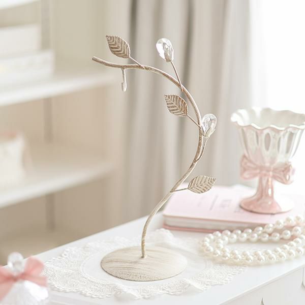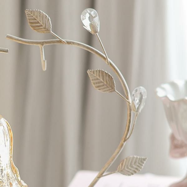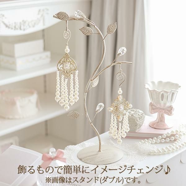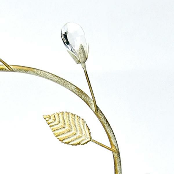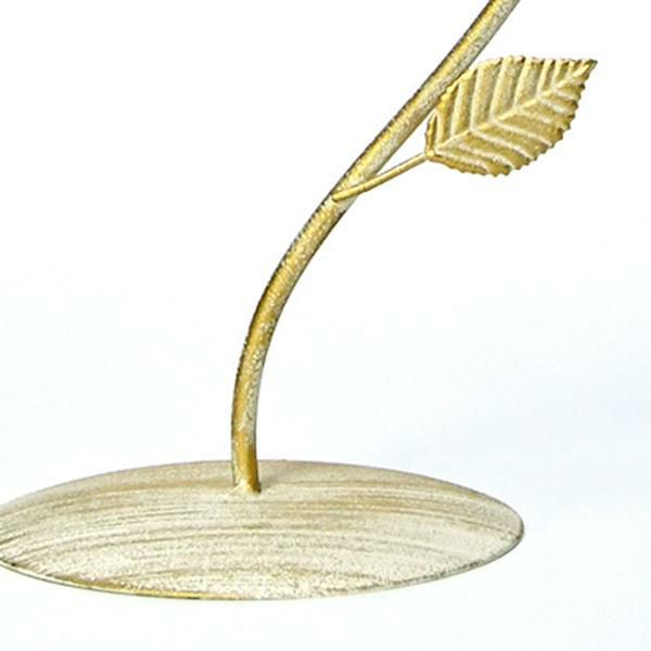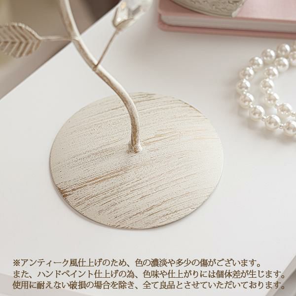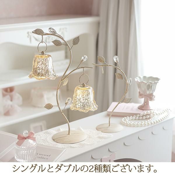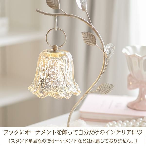 シャビーシックに仕上げられたリーフが優雅で、クリアストーンのベリーがきらめきを添える、ロマンティックなランプスタンド。チューリップ型LEDランプと組み合わせれば、玄関やリビングがまるでおとぎ話のワンシーンのように。オーナメントやアクセサリーを飾ってインテリアオブジェにしても素敵です。
