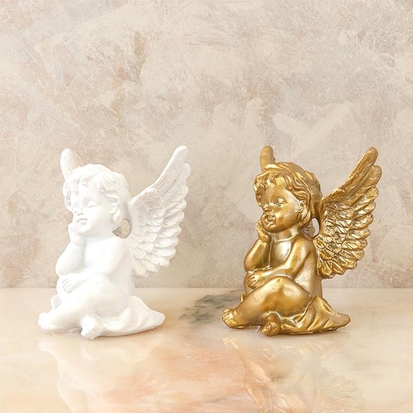 360度どこから見ても美しい、こだわりを詰め込んだデザイン。 デスクやテーブルにそっと置くだけで、私だけの特別な美術館に。 愛らしい天使の微笑みは、ふと目が合うたびに心をふんわりと解きほぐし、穏やかな幸せを運んでくれます。コンパクトなサイズ感なので、置き場所を選ばないのも嬉しいポイント。 洗練されたシルエットが、いつものお部屋をワンランク上の可憐な空間へと引き立てます。甘くなりすぎない「ホワイト」は、どんなインテリアにも馴染み、空間を明るく清らかに。 煌びやかな「ゴールド」は、クラシックなお部屋のアクセントとして、優雅なエッセンスをプラスしてくれます。お気に入りの香水瓶やアクセサリーと一緒に小さな天使を迎え入れて癒しのひと時を。