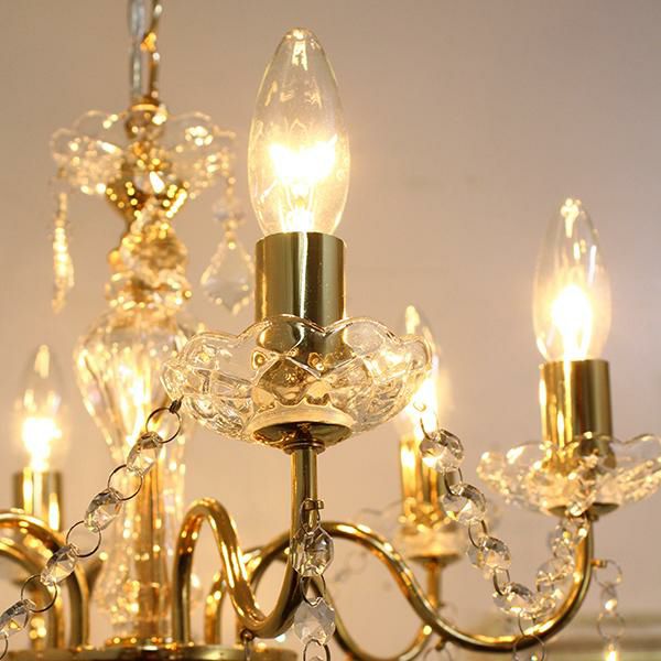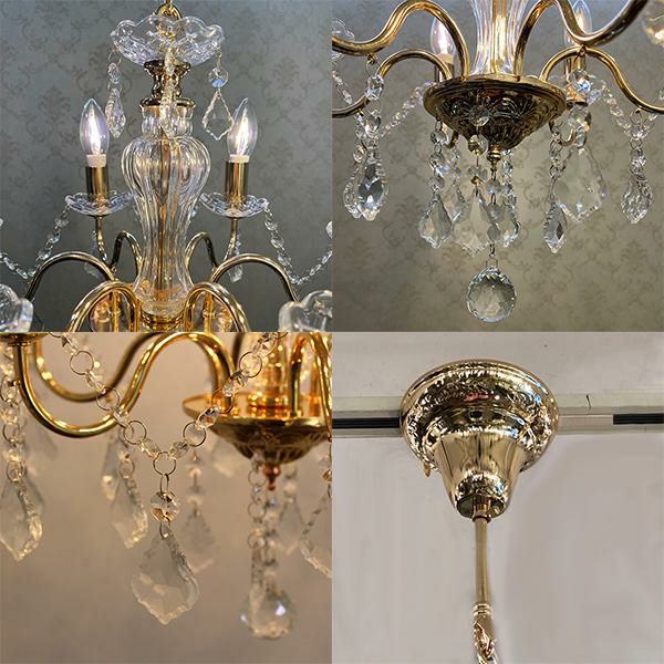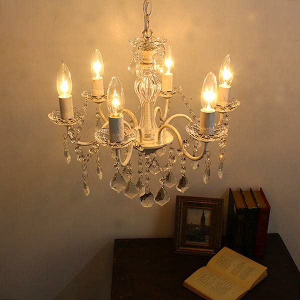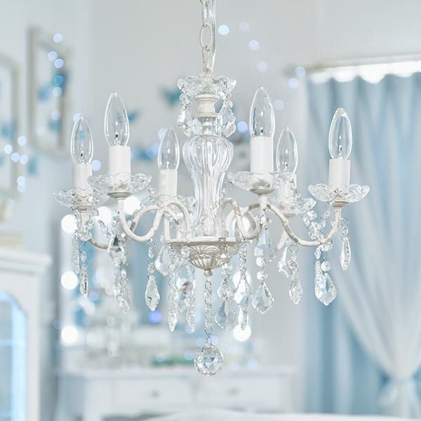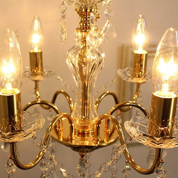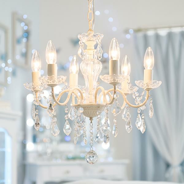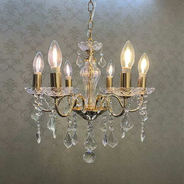 繊細なフォルムとクリスタルガラスの輝きが美しいヨーロピアンムードたっぷりな6灯シャンデリア。