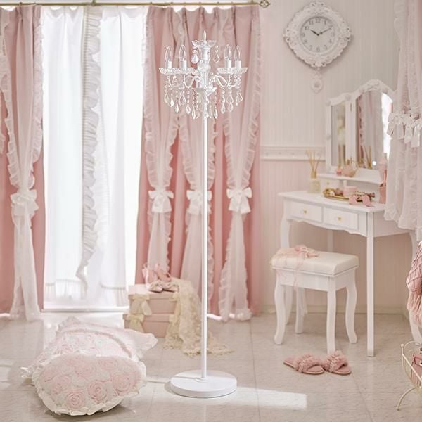 シャンデリアのような華やかな輝きが美しい、ロマンティックなスタンドライト。置くだけで存在感があり、一気にクラシカルな雰囲気に。ゴールドはラグジュアリー感を、マットホワイトはクラシカルで上品なムードを演出してくれます。スイッチは足元で簡単にオン・オフでき、間接照明としても大活躍。お部屋に「特別な灯り」を添え、ワンランク上のインテリアコーディネートが叶います。