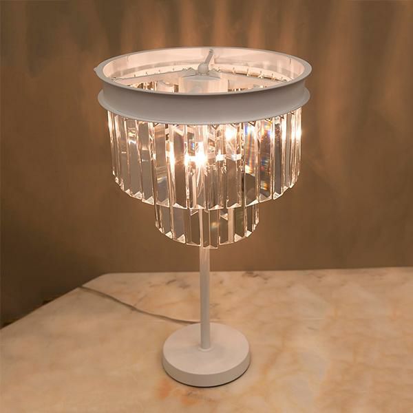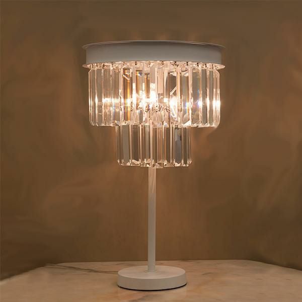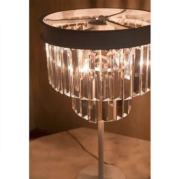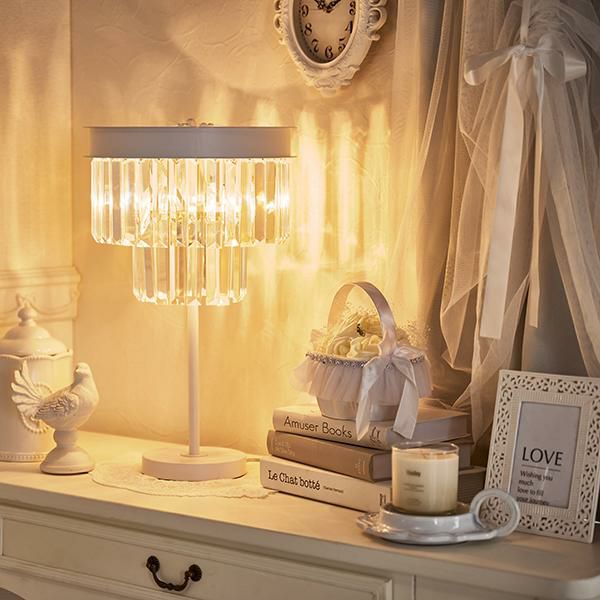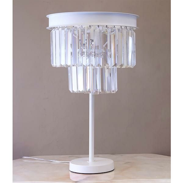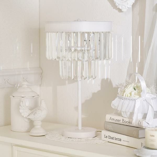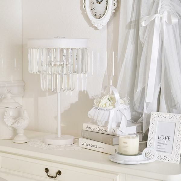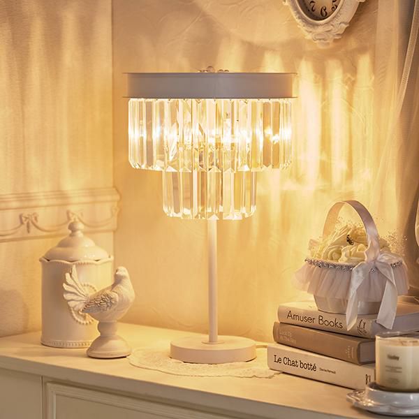 クリスタルビーズが連なったモダンエレガントなムード漂うテーブルランプ。キラキラと美しく輝く装飾が上品で、置くだけでお部屋のイメージアップが叶いそう。ホワイトカラーでインテリアのテイストを選ばずコーディネートしていただけます。