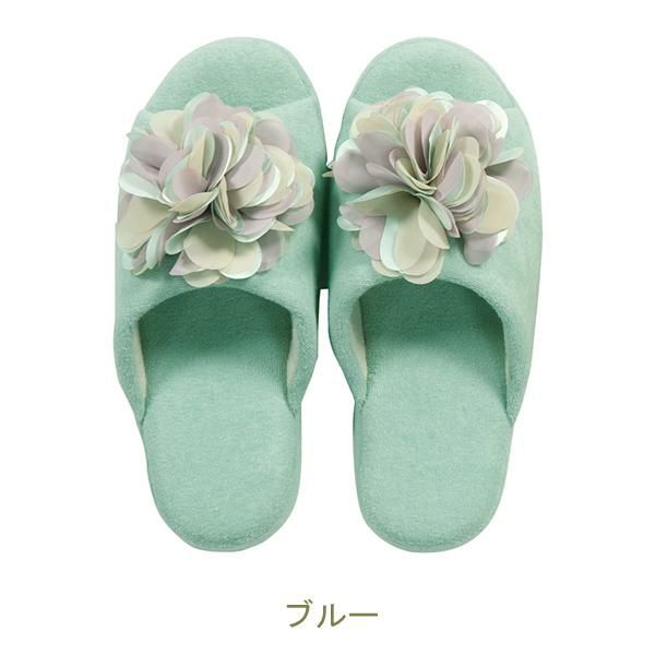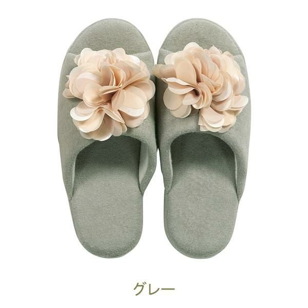 シフォンとサテンを重ねた淡いグラデーションの可憐な花モチーフ付きがとってもかわいい!ロマンティックフェミニンなカラーが足元を優しく彩ります。