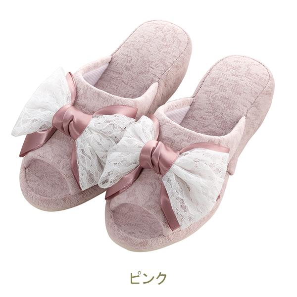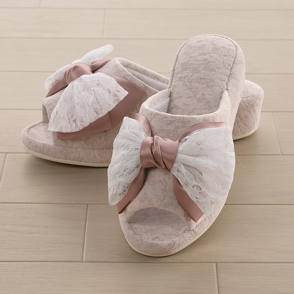 贅沢なボリュームリボンで、一歩歩くたび、心ときめくルームシューズ♪