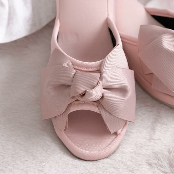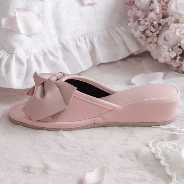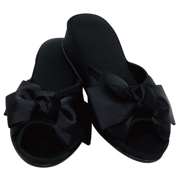 大きなリボンが素敵なサテンヒールスリッパ♪