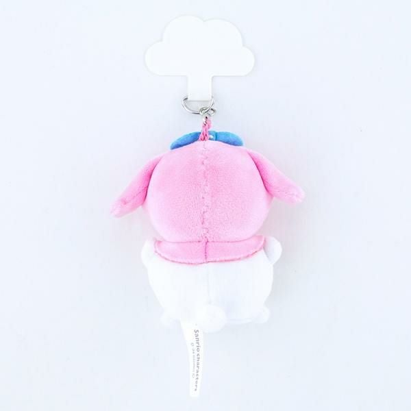 スマホチャーム (ストラップシート付)。ホルダーシートでスマホケースに簡単に取り付けられます。簡単に外せるのでいつでもどこでも「ぬい撮り」できます。ループがあるので、ボールチェーンにも付けられます。※ボールチェーン別売り