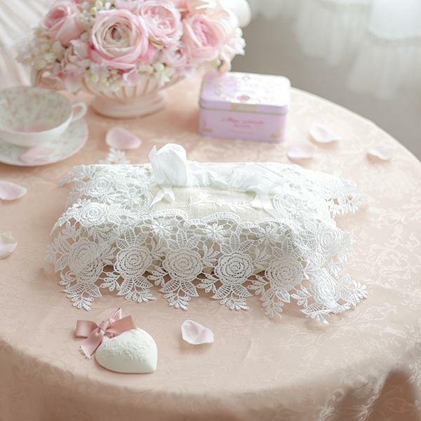ケミカルレースが美しい、上品なティッシュボックスカバー