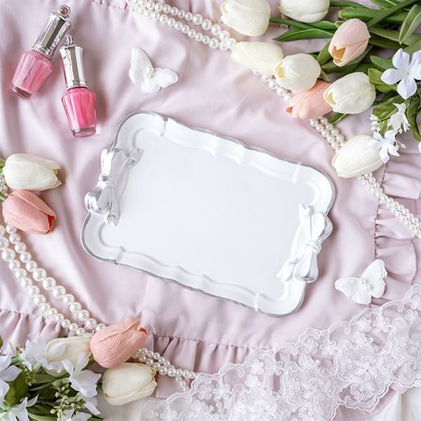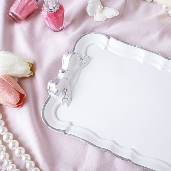 リボン小物3段トレイ(シルバー)
