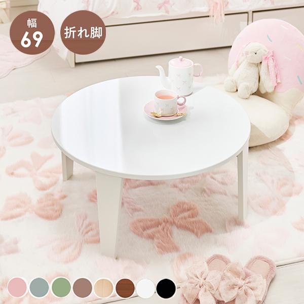 【直送】くすみダスティカラーの折りたたみテーブル(円・69cm)