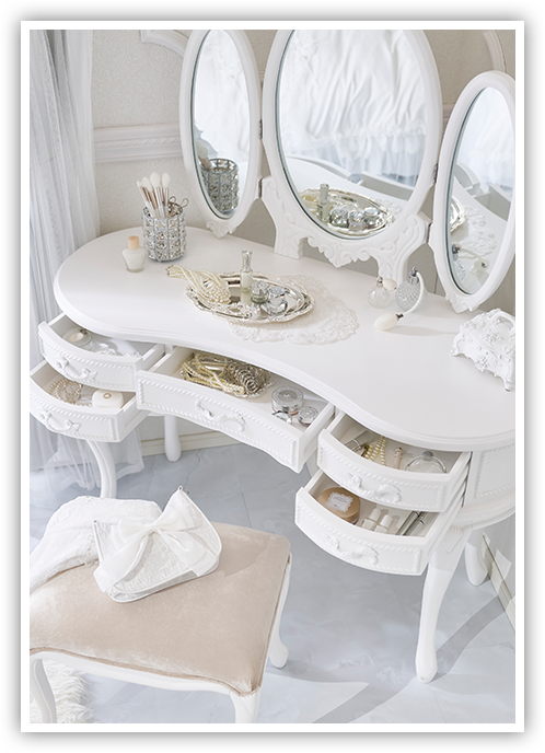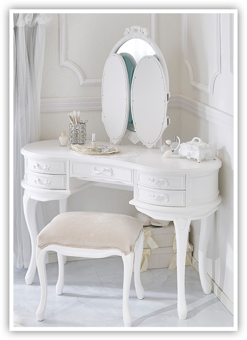 クラシカルドレッサー&スツール/BlancLoire(ブランロワール)クラシカルでリュクスなムードの純白ドレッサー