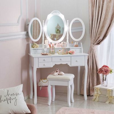 すごく可愛くて、このドレッサーでお化粧をするとすごくテンションが上がります。しかし、少しかけているところがあり、そこだけが残念です。あまり分からないので大丈夫ですが、5ではなく4にさせていただきました。