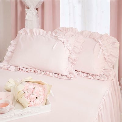 フリルがダブルでリボンが付いていて、細部までどこからどう見てもかわいすぎました!!手触りも良くて寝る時も幸せ♡私の枕はオーダーで比較的大きいのですが問題なく入りましたし、合わせ入れタイプなので使いやすさも最高です。お値段以上で嬉しいです!