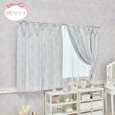 オーナメントリボン遮光カーテン/レースカーテンセット(幅100×丈135・4枚組・グレー)のレビュー