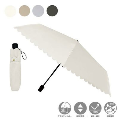 片手で簡単に開閉できて便利です! 2段の丸いシルエットの日傘は茶色っぽいグレージュを持っているので、真っ白のスカラップフリルのコンパクトなこの傘と荷物の量で使い分けてます。 ちょっと閉じる時が重い?かたい?ですが、思いっきりぎゅってできるので気を使わなくて良いし、慣れました!