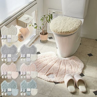 メリージェラートミルキーシェルトイレ4点セット(ふたカバー・マット・スリッパ・ホルダーカバー)のレビュー