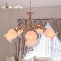 写真通りの可愛いシャンデリアでした。お花型で見た目がシャンデリアすぎないので、ふつうの家具ともよく合いました。うまく取り付けても少し傾いてしまう点は気になりましたが、トータルで可愛いので満足です。