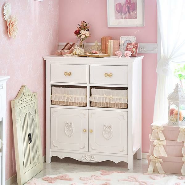 キャビネットに合わせてこちらのドレッサーを購入しました。統一されて可愛いです。 リボンの取っ手が1つ噛み合わせが悪くて、お問合せしたらすぐにご対応くださいました! -