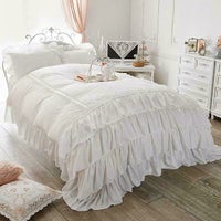 枕カバーもベッドスカートもかわいいですが掛け布団カバーがとっってもかわいいです!掛け布団カバーの内側にしっかりとずれ防止の紐もついていて便利で満足しています♡ -