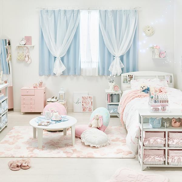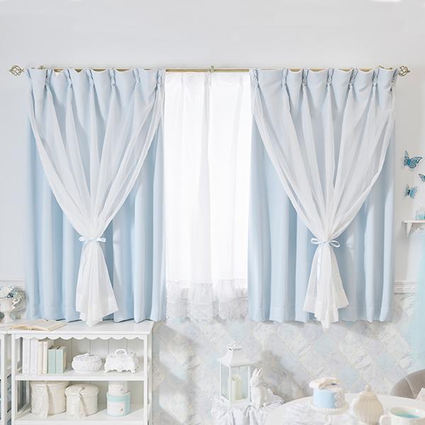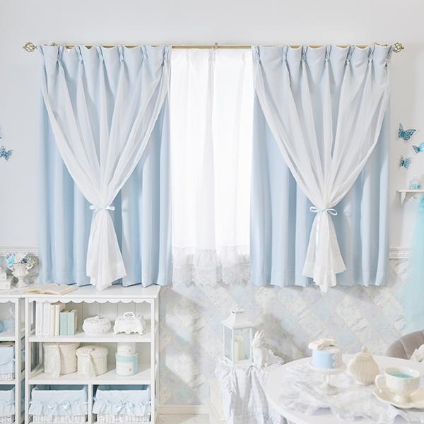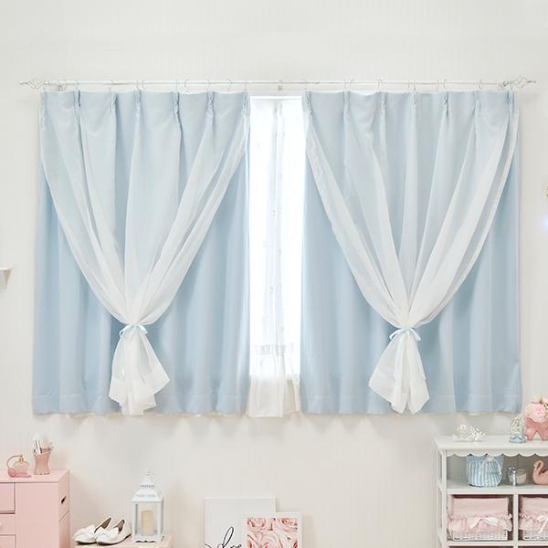 上飾り付きレイヤード遮光カーテン/ピンク(幅100×丈178・190・200・2枚組)