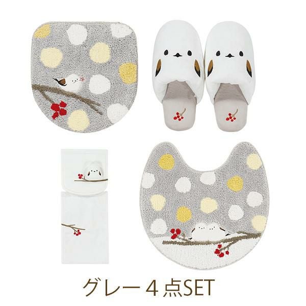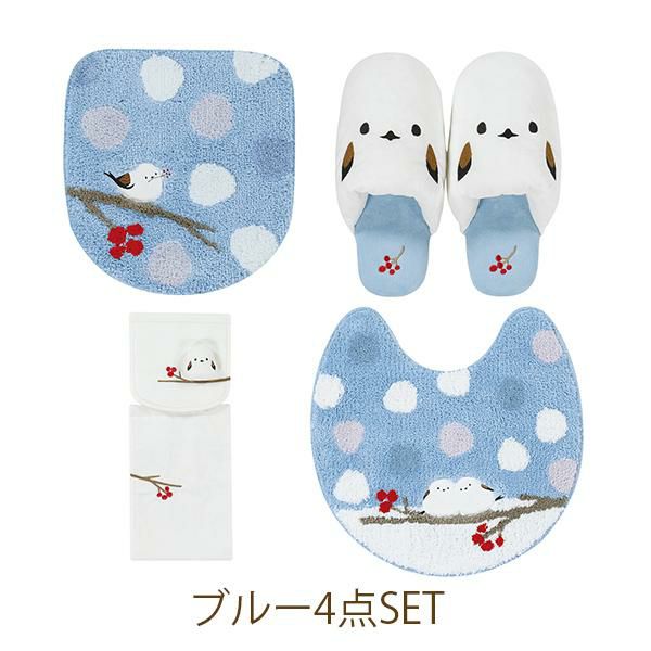 トイレタリー4点セット(兼用フタカバー・マット・ペーパーカバー・スリッパ)/シマエナガちゃん