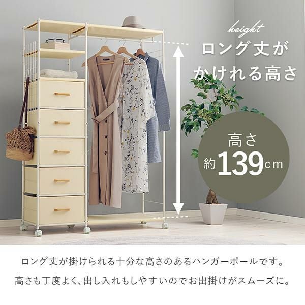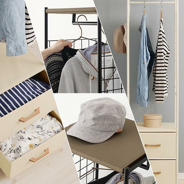 【直送】天然木のL字ハンガーラック(幅50cm)