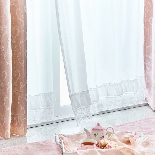 裾レースフリル多機能レースカーテン(幅100×丈176・188・198・2枚組)